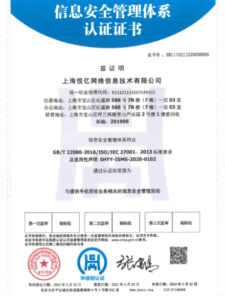 ATRenew has passed the Level 3 Assessment under “China's Multi-Level Protection Scheme” and has been certified by the ISO 27001 information security management system.